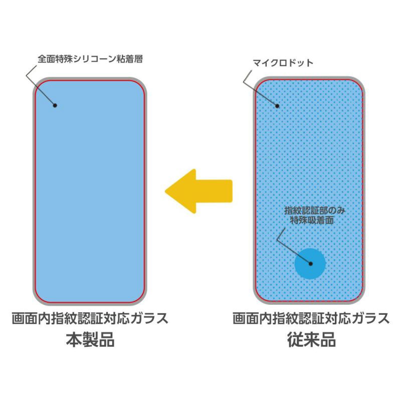 画面内指紋認証に対応した特殊な粘着層を採用。スクリーンプロテクターを貼った状態でも貼らない状態と変わらない使い心地で指紋認証機能をお使い頂けます。