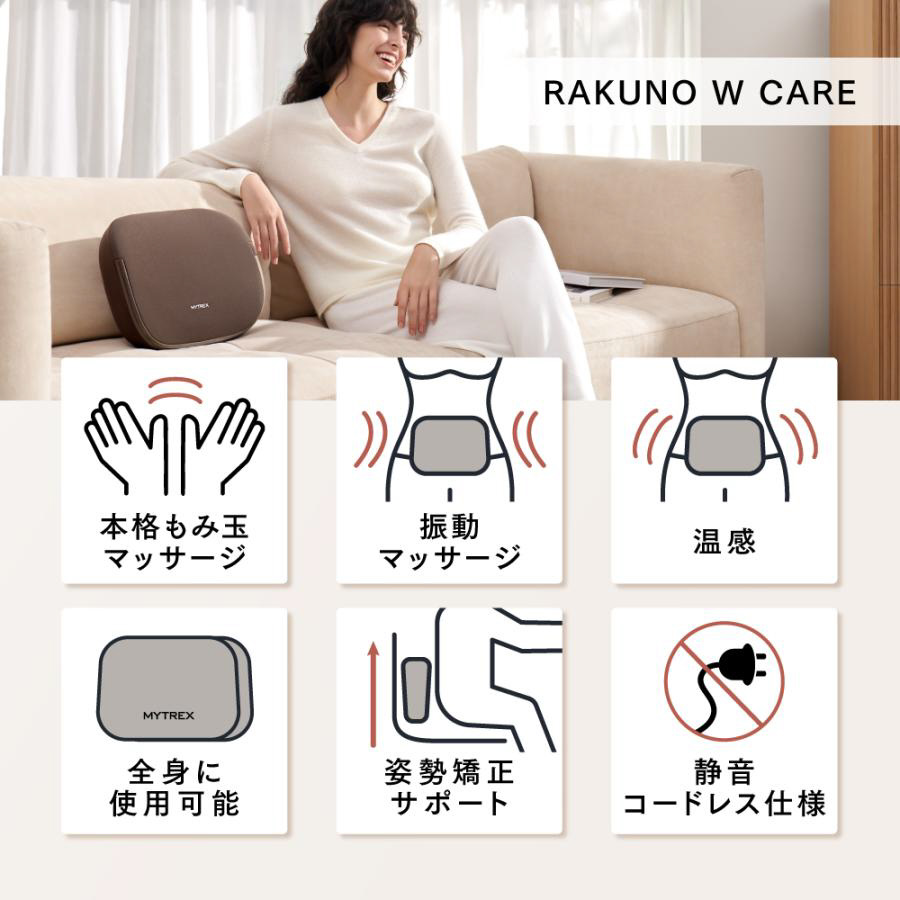 コードレスマッサージクッション 両面ボディマッサージャー ラクーノダブルケア MT-RC-25MG
