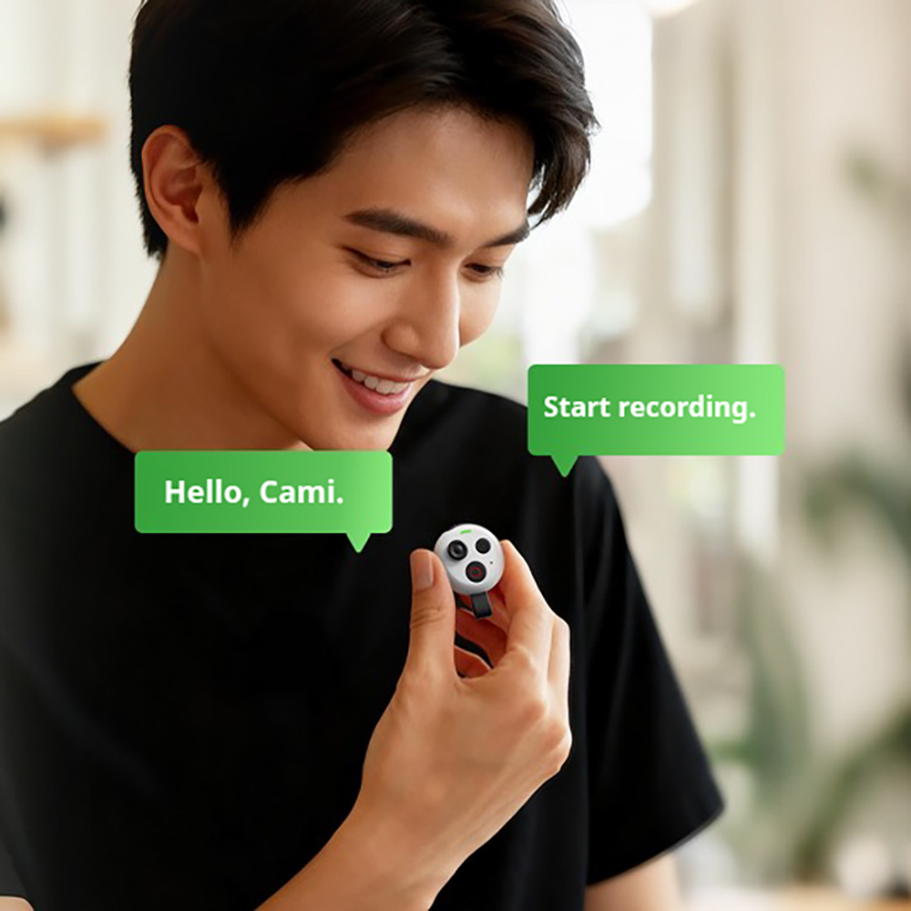 新たに音声操作をサポート。「Hello, Cami」「Start recording」といった音声指示で、写真撮影や録画の開始・停止が可能です 。両手が塞がっている状況でも、自由な創作に集中することができます 。