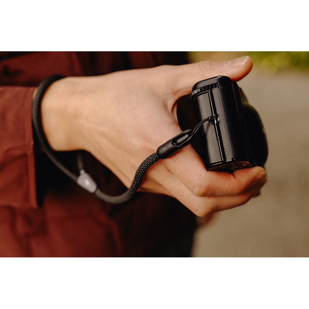 手が滑った瞬間にループが締まる安全設計を採用。アルミニウム製のストッパーで、あらかじめ手首に合わせた最小サイズを設定しておくことができます。