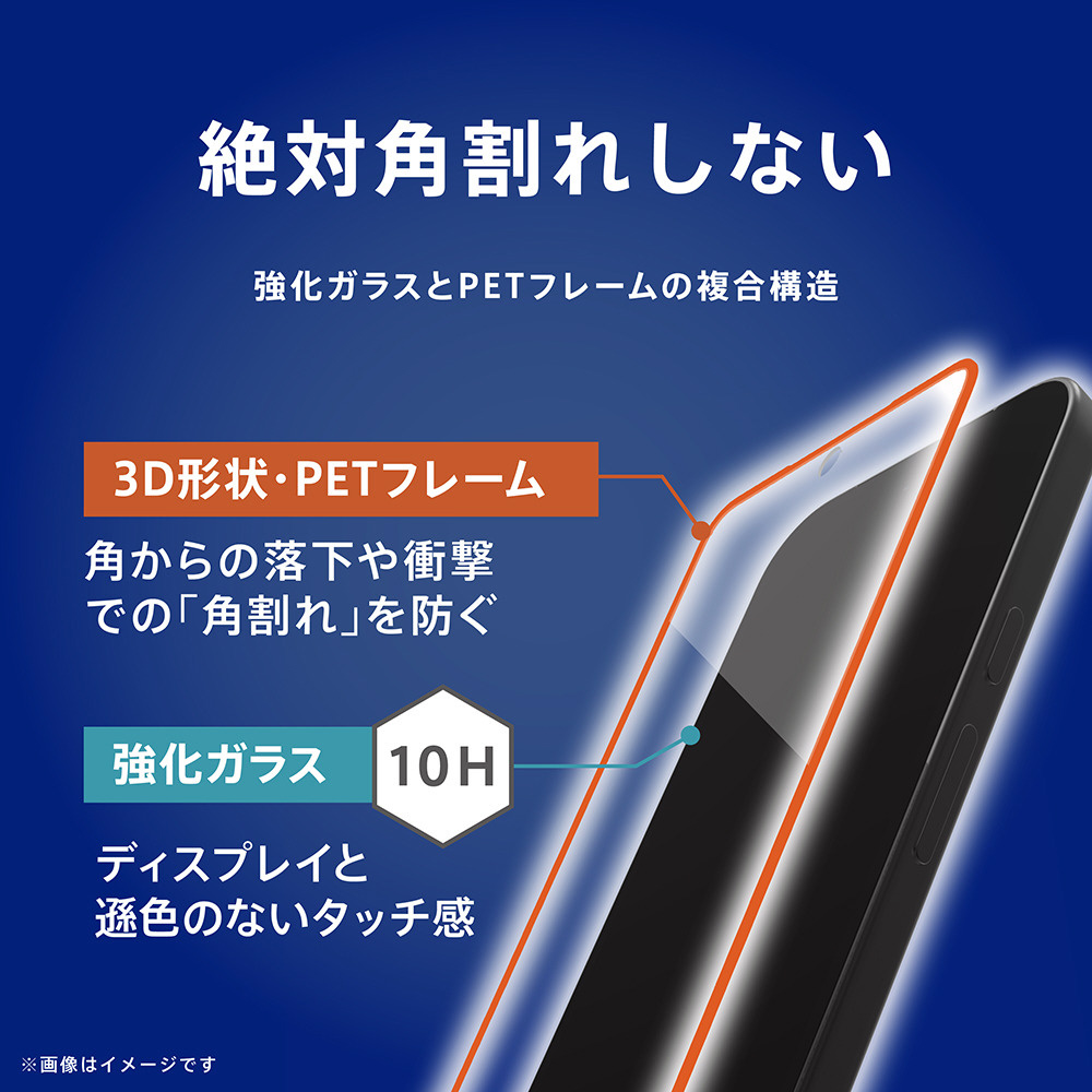 絶対、角割れしない。強化ガラスとPETフレームの複合構造