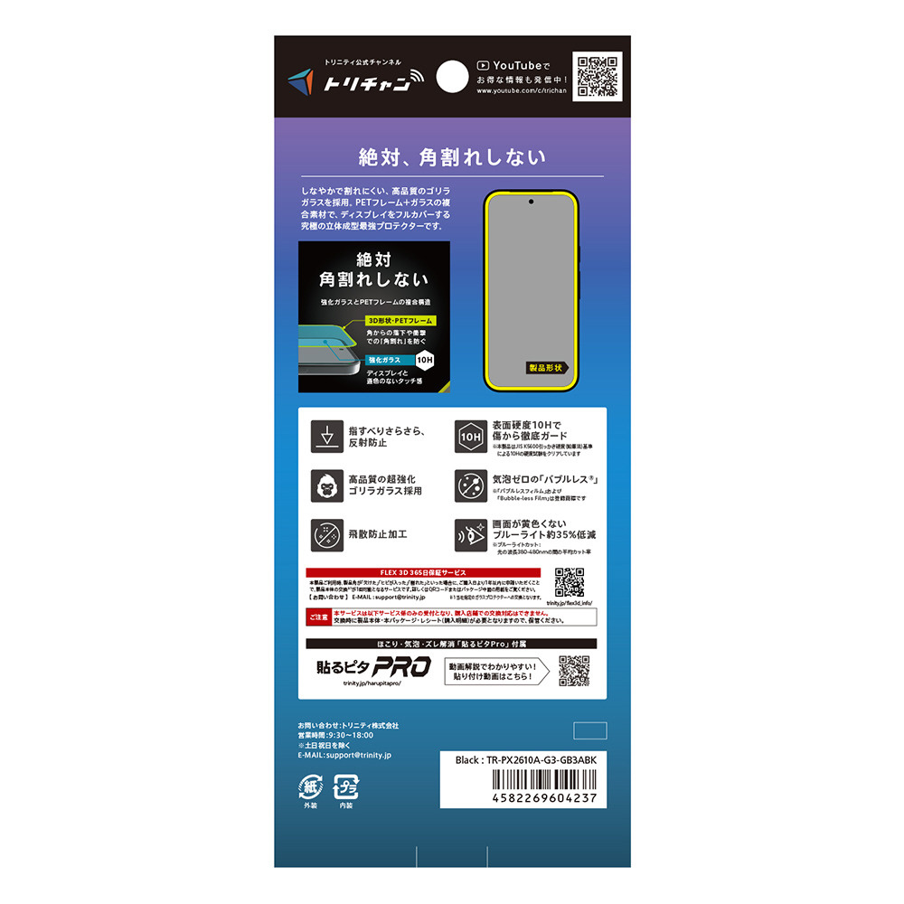 Google Pixel 10a [FLEX 3D] ゴリラガラス 反射防止 黄色くないブルーライト低減 複合フレームガラス ブラック