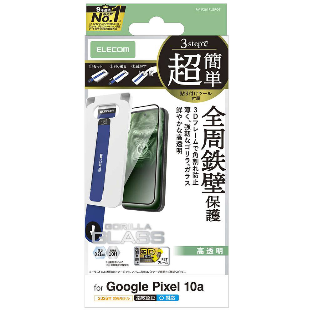 Google Pixel 10a ガラスフィルム フレーム付き ゴリラ 0.21mm 超簡単貼り付けツール