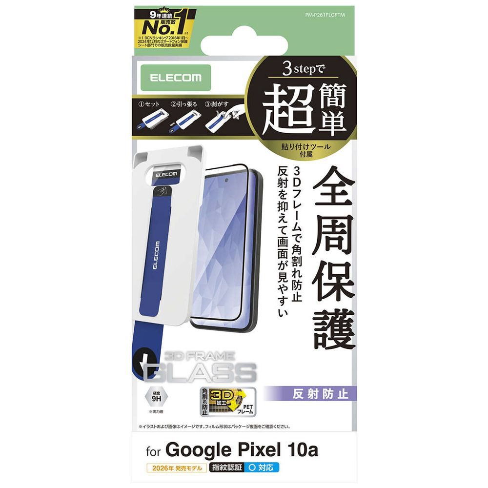 Google Pixel 10a ガラスフィルム フレーム付き 反射防止 超簡単貼り付けツール