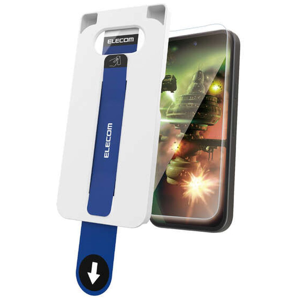 端末に被せて、テープを引くだけでフィルムを正確な位置に貼れる超簡単貼り付けツール付きです。