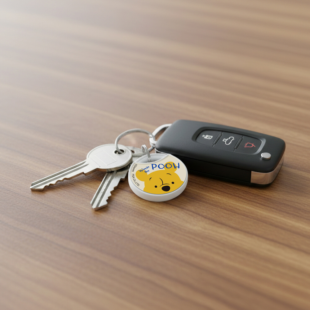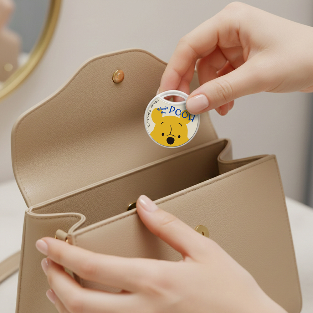 忘れ物をスマートフォンで見つけるディズニーキャラクターデザインの紛失防止タグ