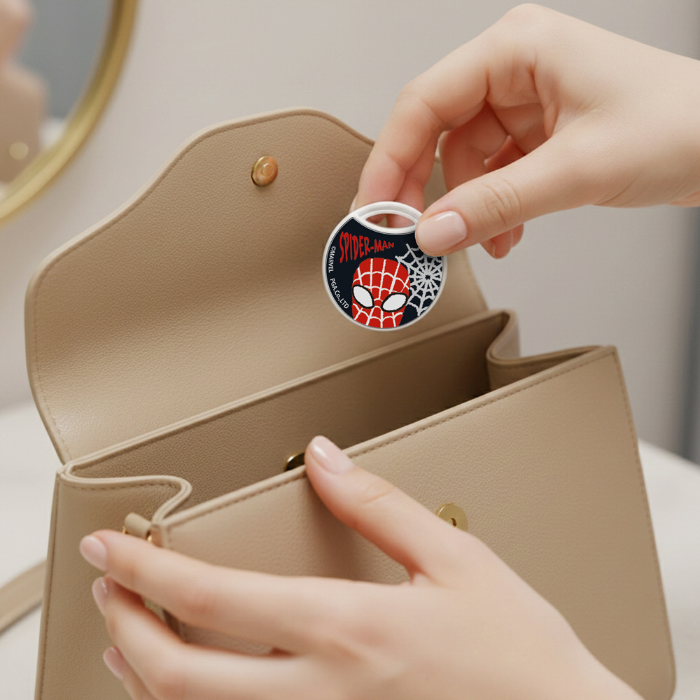 忘れ物をスマートフォンで見つける「MARVEL」デザインの紛失防止タグです。
