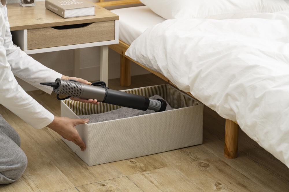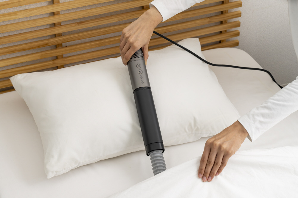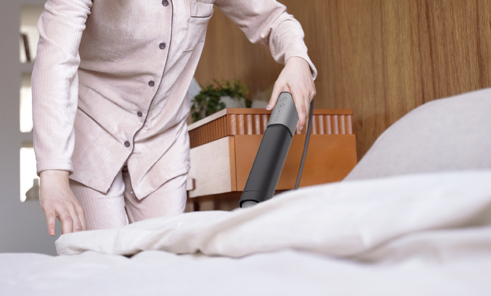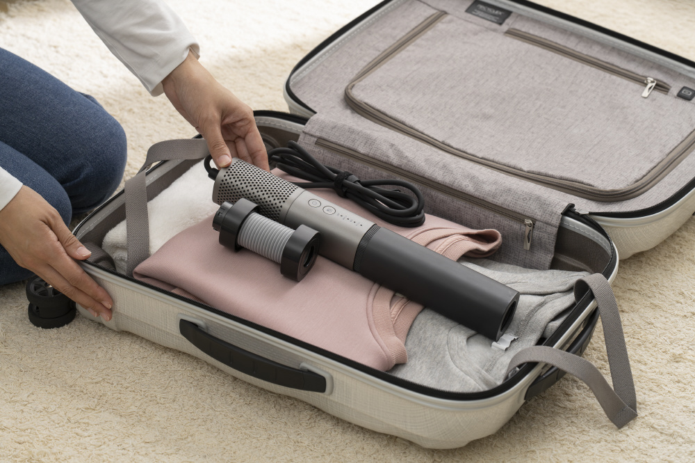 コンパクトなスティックタイプだから、収納スペースを取らず、使わないときも邪魔になりません。さらに、持ち運びしやすいサイズ感で、旅先や出張先でも大活躍。外出先でもふとんを快適に保ちます。