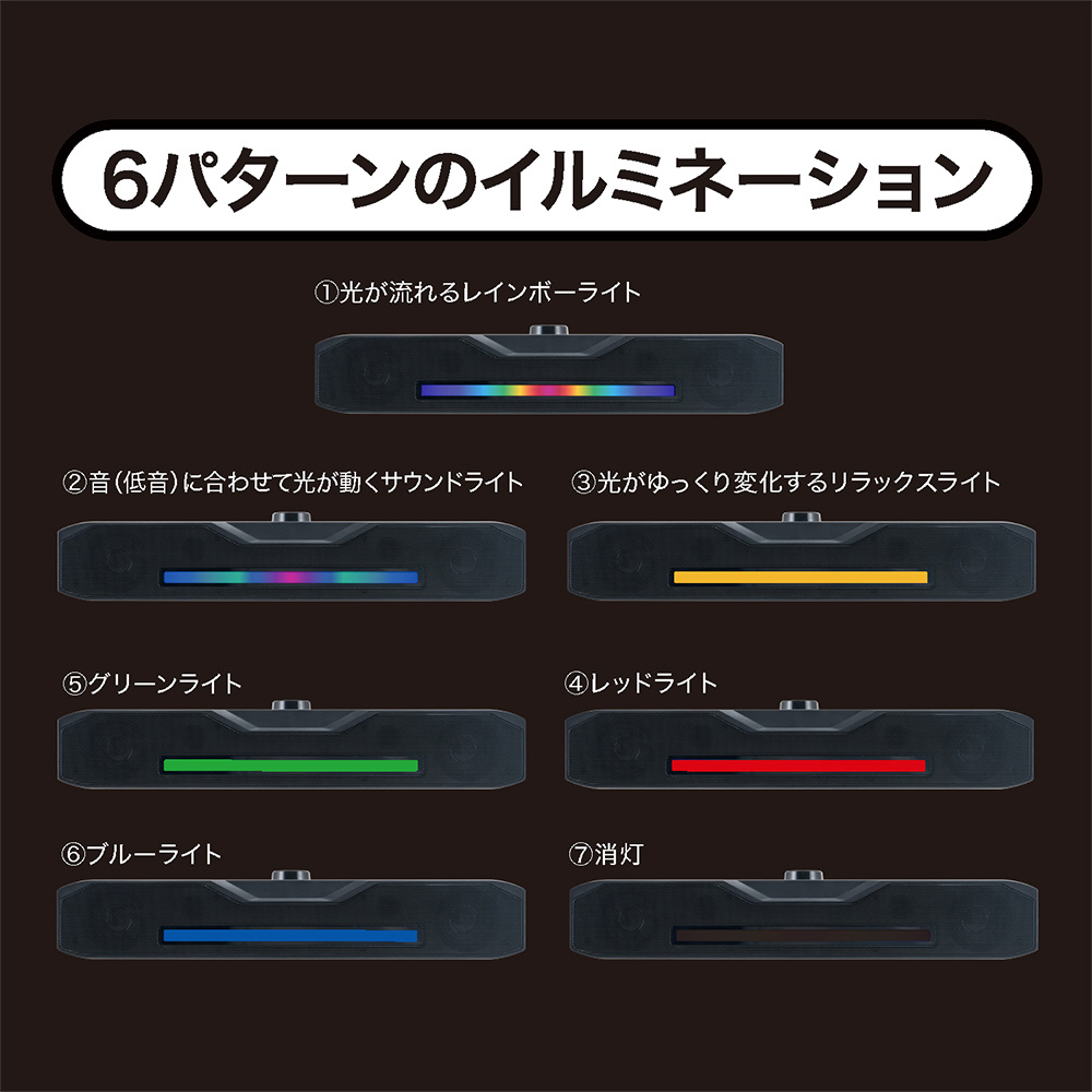 RGBLED搭載で6パターンのイルミネーションを演出。ゲームや音楽鑑賞を盛り上げます。