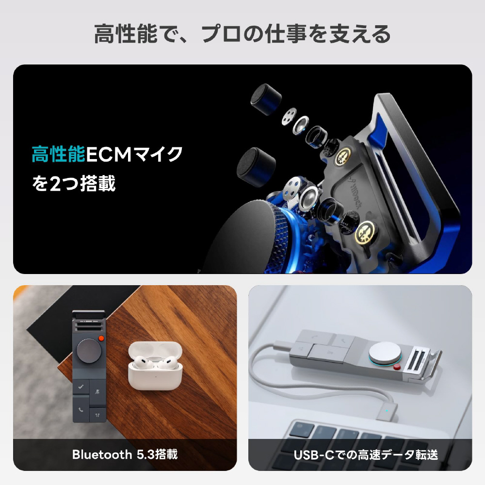 独自のBlueCatch機能により、ワイヤレスイヤホンを使用した通話音声も高品質で録音できます。外出先でもスマートに使用することができます。