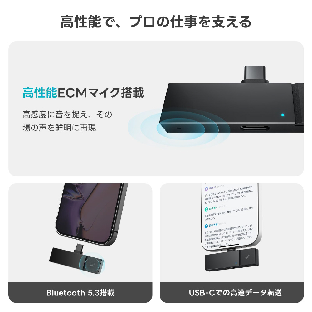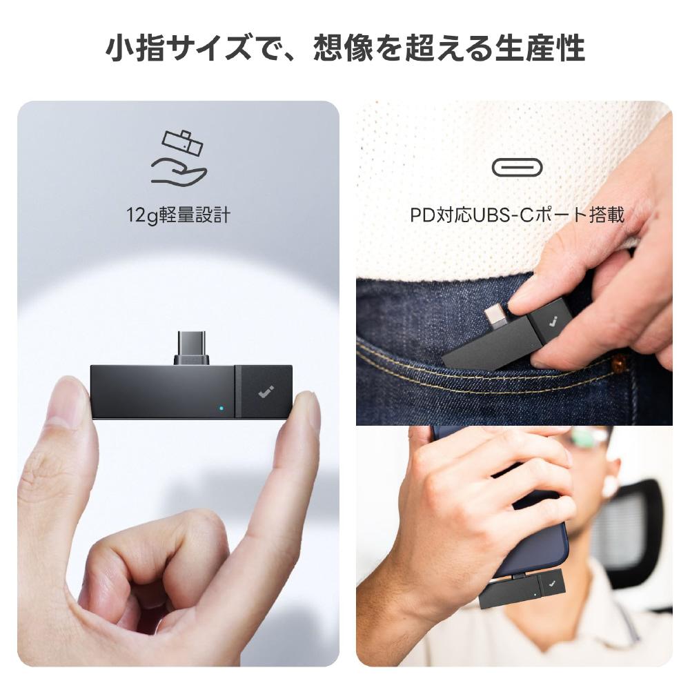 約12gの軽量設計で持ち運びにも便利。コンパクトなサイズながら高性能な録音機能を備え、日常の通話録音や会議記録をスマートにサポートします。