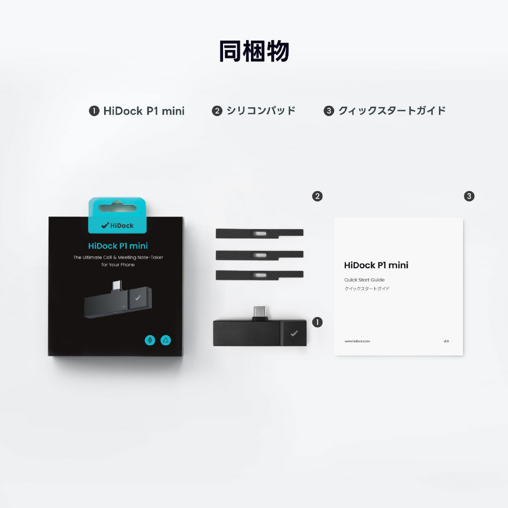 AIボイスレコーダー 録音/文字起こし/要約/議事録 ワイヤレスイヤホン対応 32GB HiDock メタルグレー P1mini [Bluetooth対応]