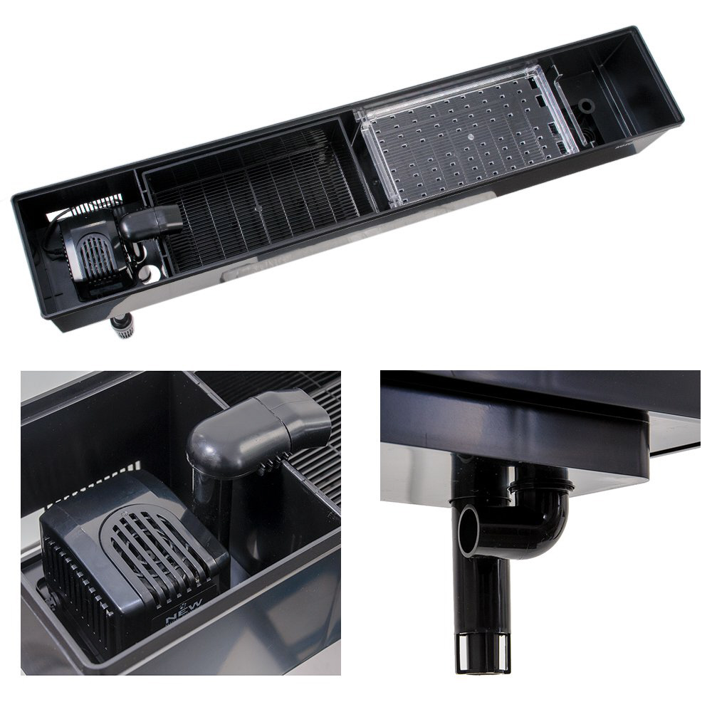 ●水位を上げれば、フィルターろ過槽全体に水が広がり、大きな面積で物理ろ過、生物ろ過を行うことができます。また活性炭など水没型のろ材を効果的に使用できます。