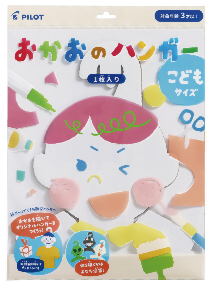 段ボールでできた顔型のオリジナルハンガーです。自由に塗料やペンを利用して「おかお」を描くことができます。描き終えたらハンガーとして使ったり、飾ることができます。親子で似顔絵を描き合い、お互いにプレゼントしたり、母の日や父の日、敬老の日といったギフトシーン、夏休み・冬休みなどの工作、さらには大人の「推し活」や寄せ書きなど、幅広いシーンでお楽しみください。