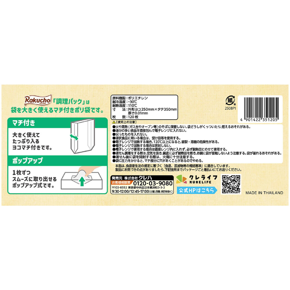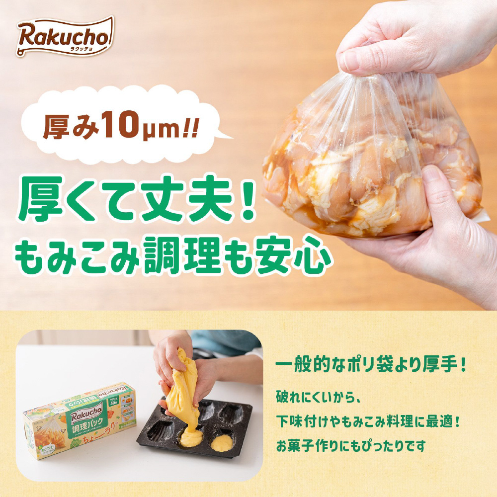 食品保存や調理補助、湯煎調理など幅広く使用できるマチ付きポリ袋です。