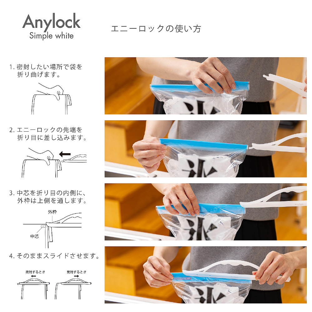 韓国で開発された元祖スライド式袋止めクリップのエニーロック。