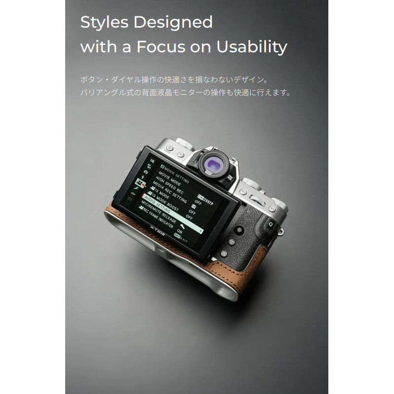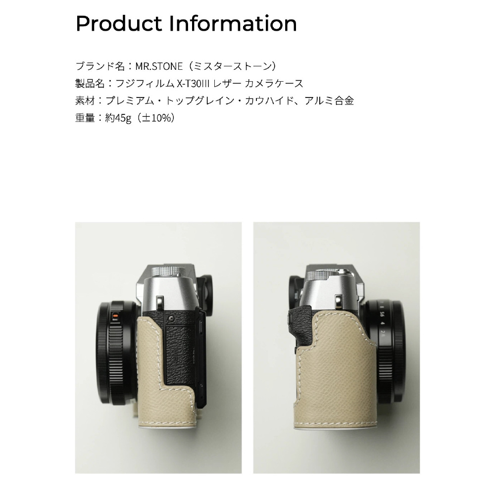 高品質なカウハイド(牛革)を使用した富士フィルム X-T30 III 専用のボディーケースです。カメラを守り、カメラの美しさを引き立てます。