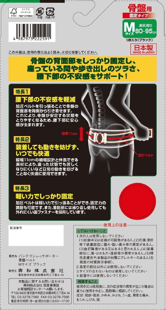 バンテリンコーワサポーター 骨盤ベルト Mサイズ ブラック バンテリンコーワサポーター