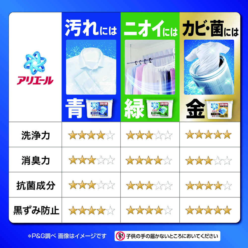 2粒で洗濯槽+排水口もスッキリ漂白剤・つけ置きなしで洗ってアリエールの力を実感!*2