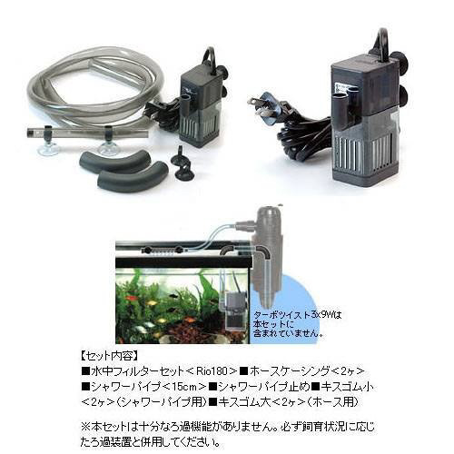 ※仕様変更に伴い、現在セットに含まれているポンプ「Rio+180(60Hz)」は、最大流量4.4L/分、消費電力3.1Wとなっております。ターボツイスト3x9Wの適合流量外の表記となっておりますが、使用上問題はありませんのでご了承ください。