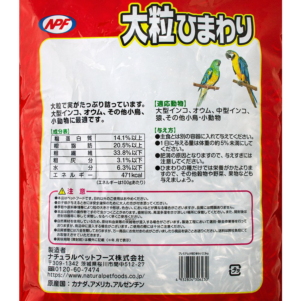 ●大粒で実がたっぷり詰まったひまわりの種です。●大型インコ、オウム、その他小鳥、小動物に最適です。