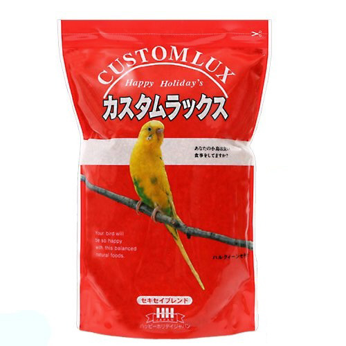 ■カナリーシード、玄あわ、ナタネ、赤あわ、赤ひえ、ニガシード、アマニシード、※カスタムラックスは、季節により配合を変えてあります。