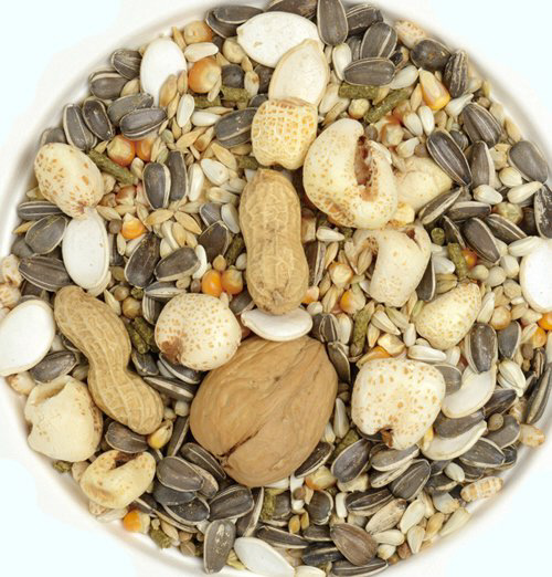 ■新鮮な種子は、ムキ餌より栄養豊富です。また、皮をむく事がくちばしの運動や遊びになります。