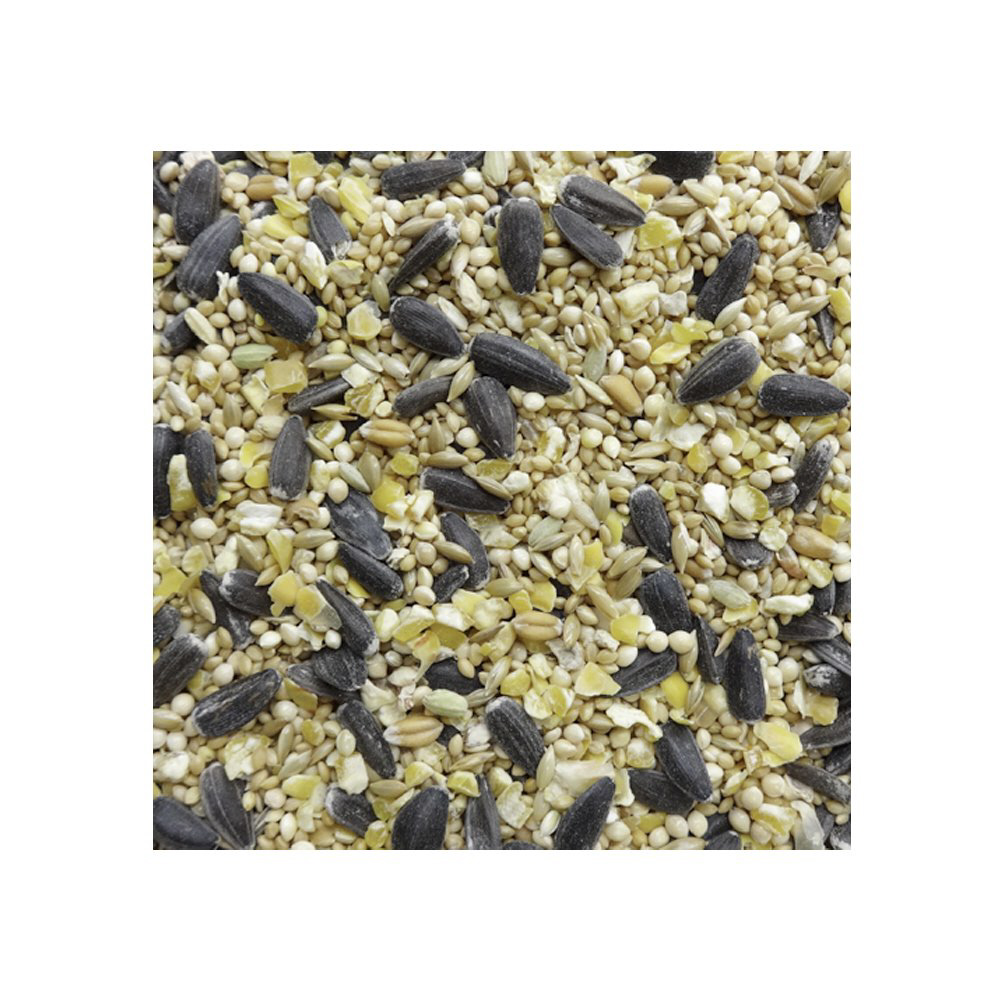 ■アワ(皮付き)、キビ(皮付き)、トウモロコシ、カナリアシード(皮付き)、大粒ひまわり、黒ひまわり、青米、小麦