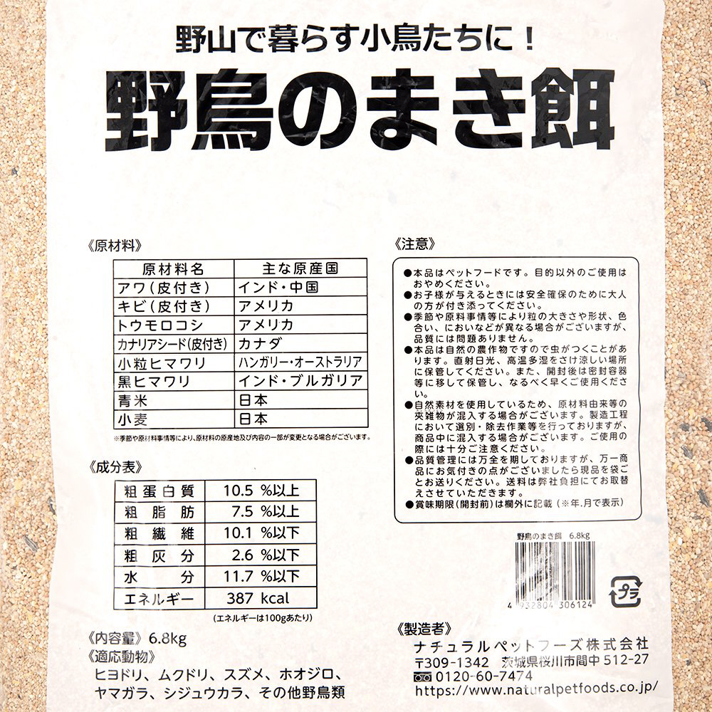 ※本品は野鳥用フードです。目的以外のご使用はおやめください。※季節や原料事情等により粒の大きさや形状、色合い、においなどが異なる場合がございますが、品質には問題ありません。※本品は自然の農作物ですので虫がつくことがあります。直射日光、高温多湿をさけ涼しい場所に保管してください。また、開封後は密閉容器等に移して保管し、なるべく早くご使用ください。