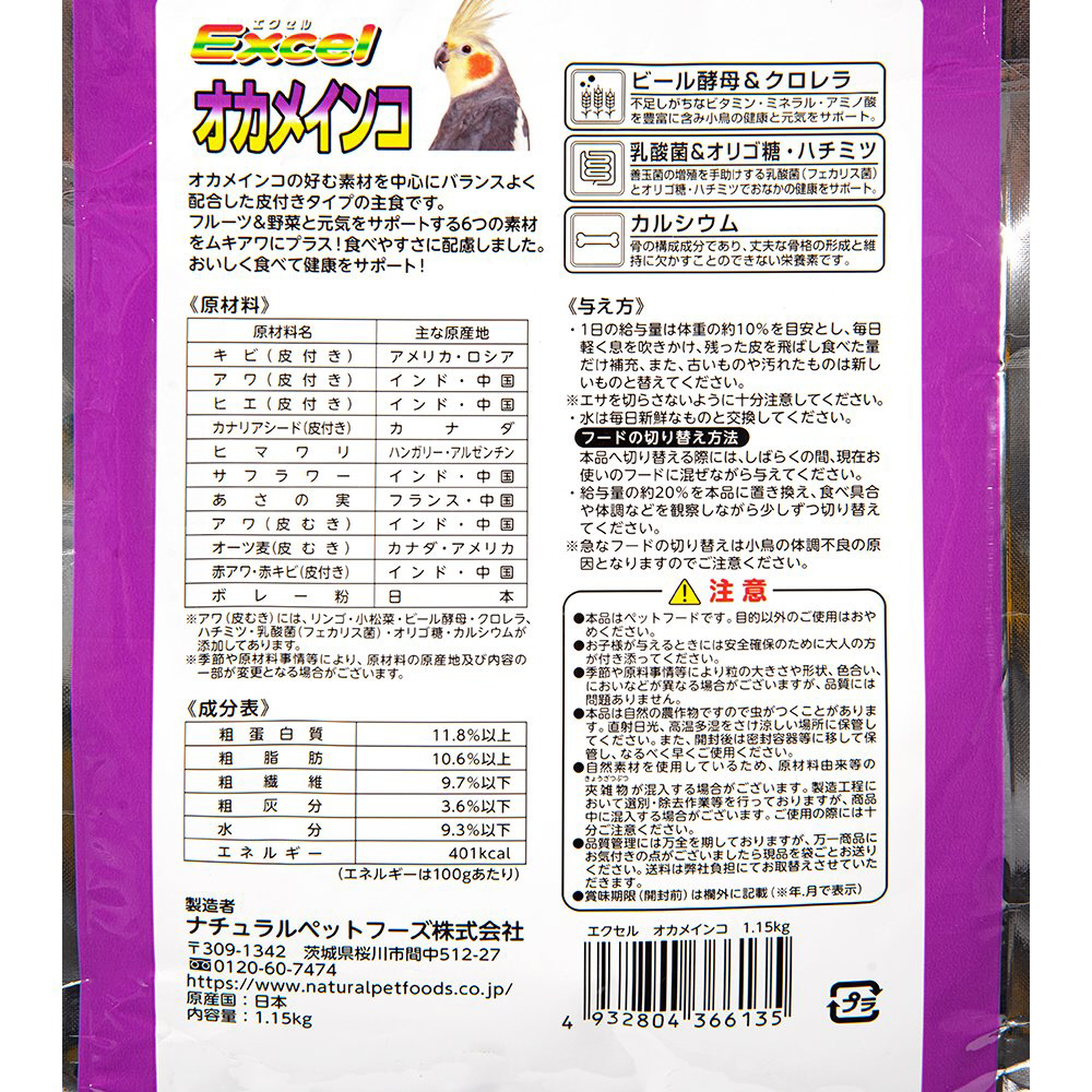 エクセル オカメインコ 皮付き 1.15kg