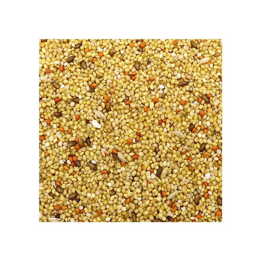 ■アワ(皮むき)、ヒエ(皮むき)、カナリアシード(皮むき)、カナリアシード(皮付き)、赤アワ(皮付き)、ボレー粉(カキガラ)、※アワ(皮むき)の一部には、ハチミツ、乳酸菌(フェリカス菌)、オリゴ糖、カルシウムが添加してあります。、※嗜好性や栄養面、小鳥の習性を考慮し、一部皮付きの種子をブレンドしています。