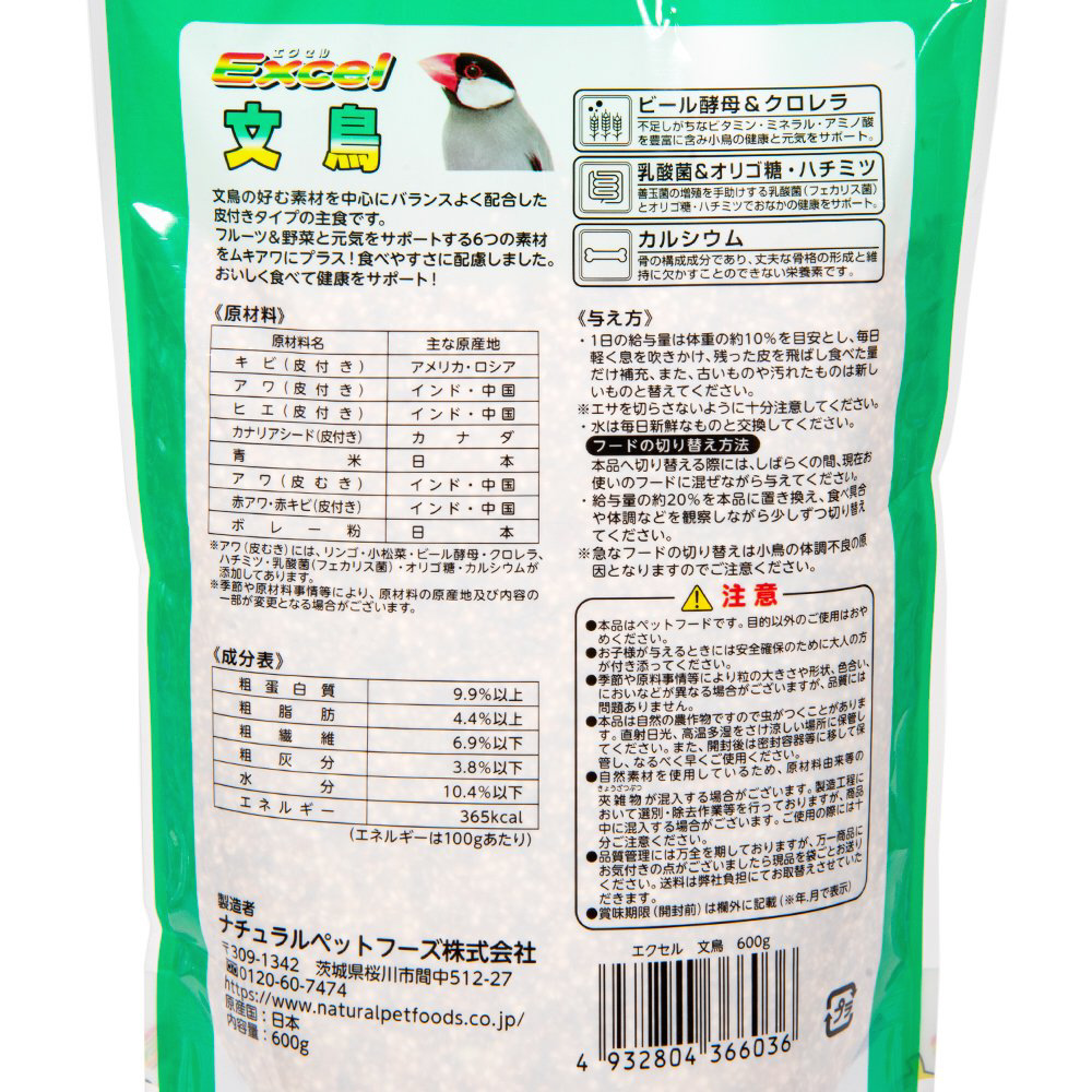 ●文鳥の好む素材を中心にバランスよく配合した皮付きタイプの主食です。●フルーツ&野菜と元気をサポートする6つの素材をムキアワにプラスしました。●食べやすさに配慮しました。