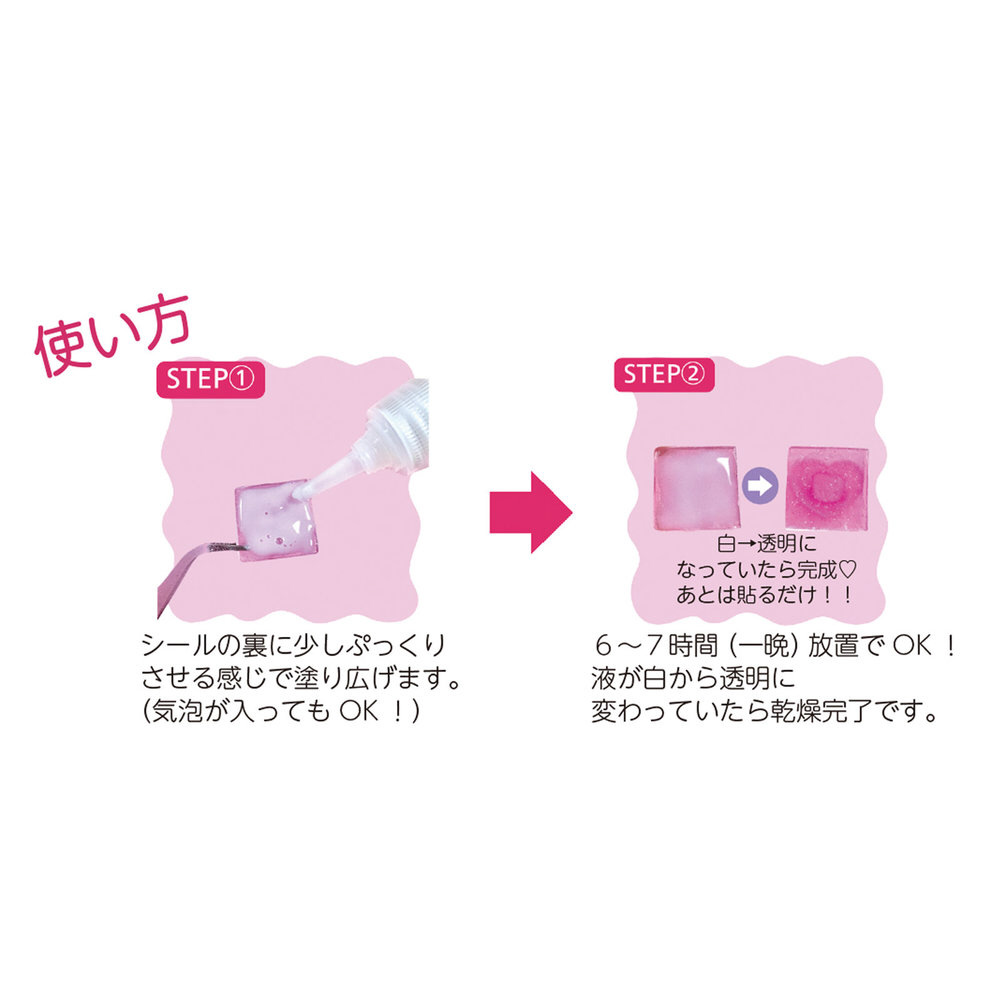 (1)シールの裏に少しぷっくりさせる感じで塗り広げます。(気泡が入ってもOK!)