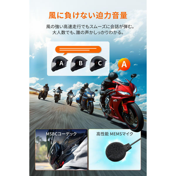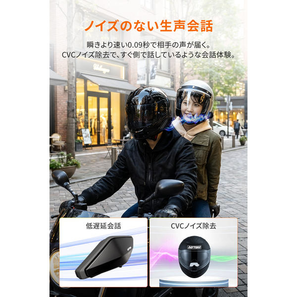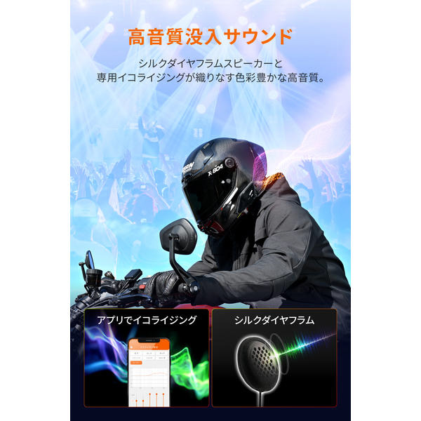インカム通話と音楽再生を同時に楽しめる。ノイズが少なくインカム通話も音楽も聞き取りやすい。