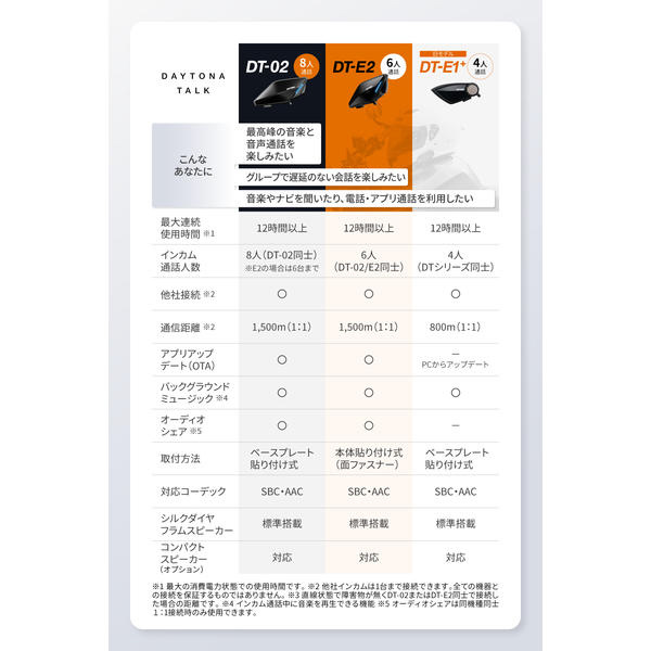 DT-E2同士なら最大で6人同時通話に対応。Bluetooth6.0搭載で、安定した通信を維持します。離れて通信が途切れても、近づくだけで自動再接続。