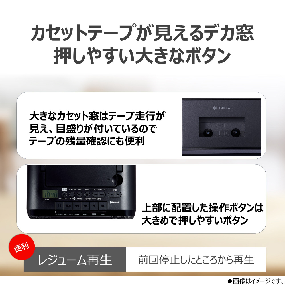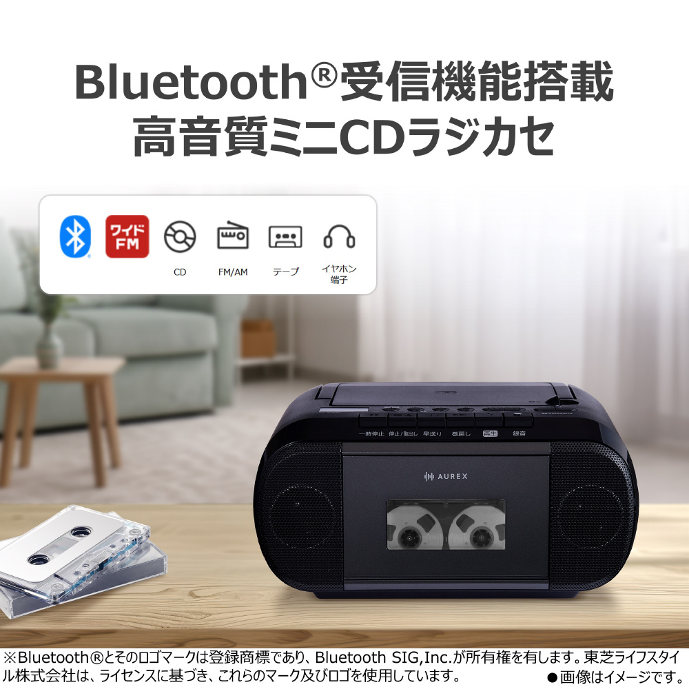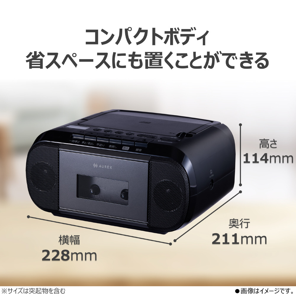 CDラジカセ AUREX ブラック AX-KCR80(K) [ワイドFM対応 /ハイレゾ非対応 /Bluetooth対応 /CDラジカセ]