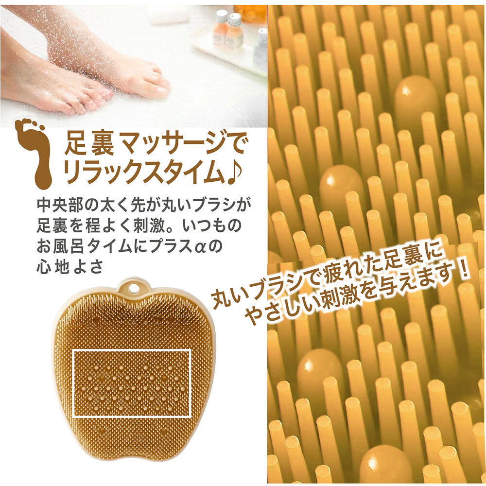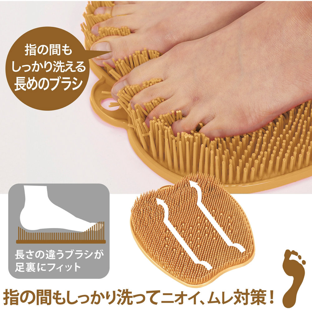 ソープを泡立てて足を前後に動かすだけで足裏を気持ちよく刺激しながら洗えます。長さの違うブラシが足の指先までしっかりっと入り込み洗えます。