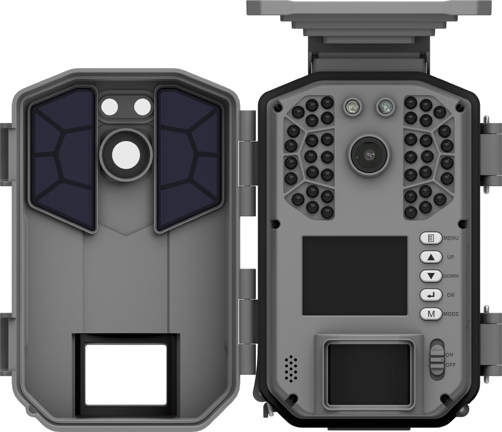 ソーラーパネル一体型トレイルカメラ 2600mAhのリチウムバッテリー 内蔵で夜間、降雨時、曇天でも作動します