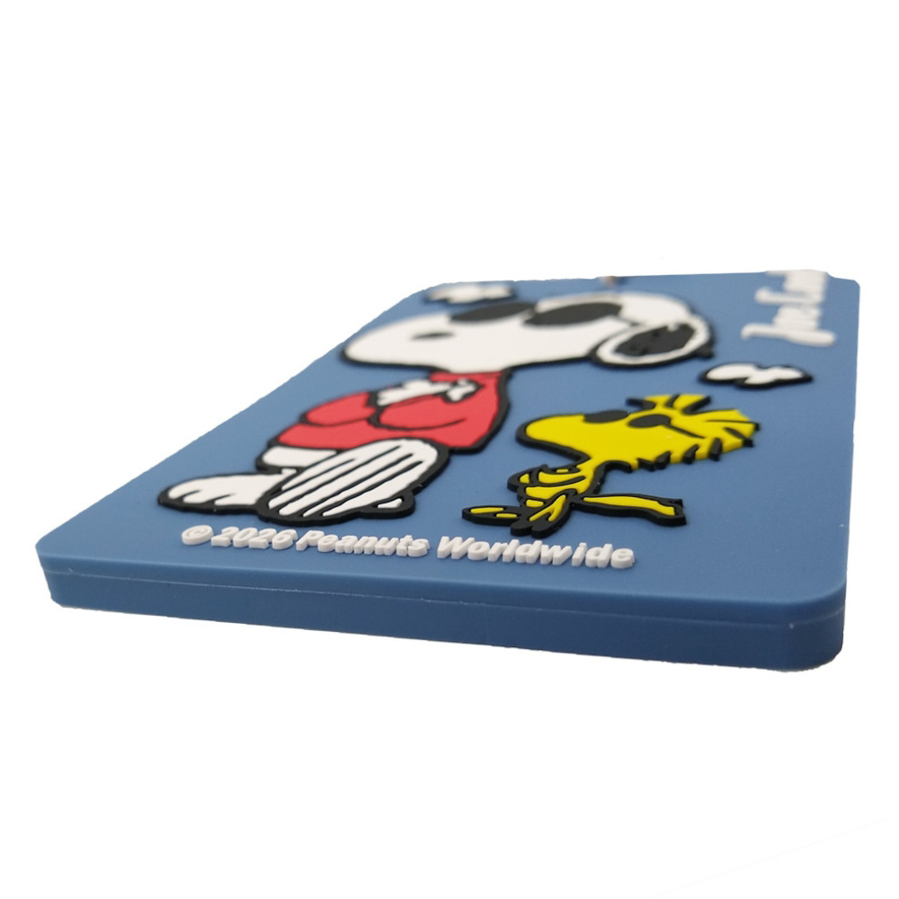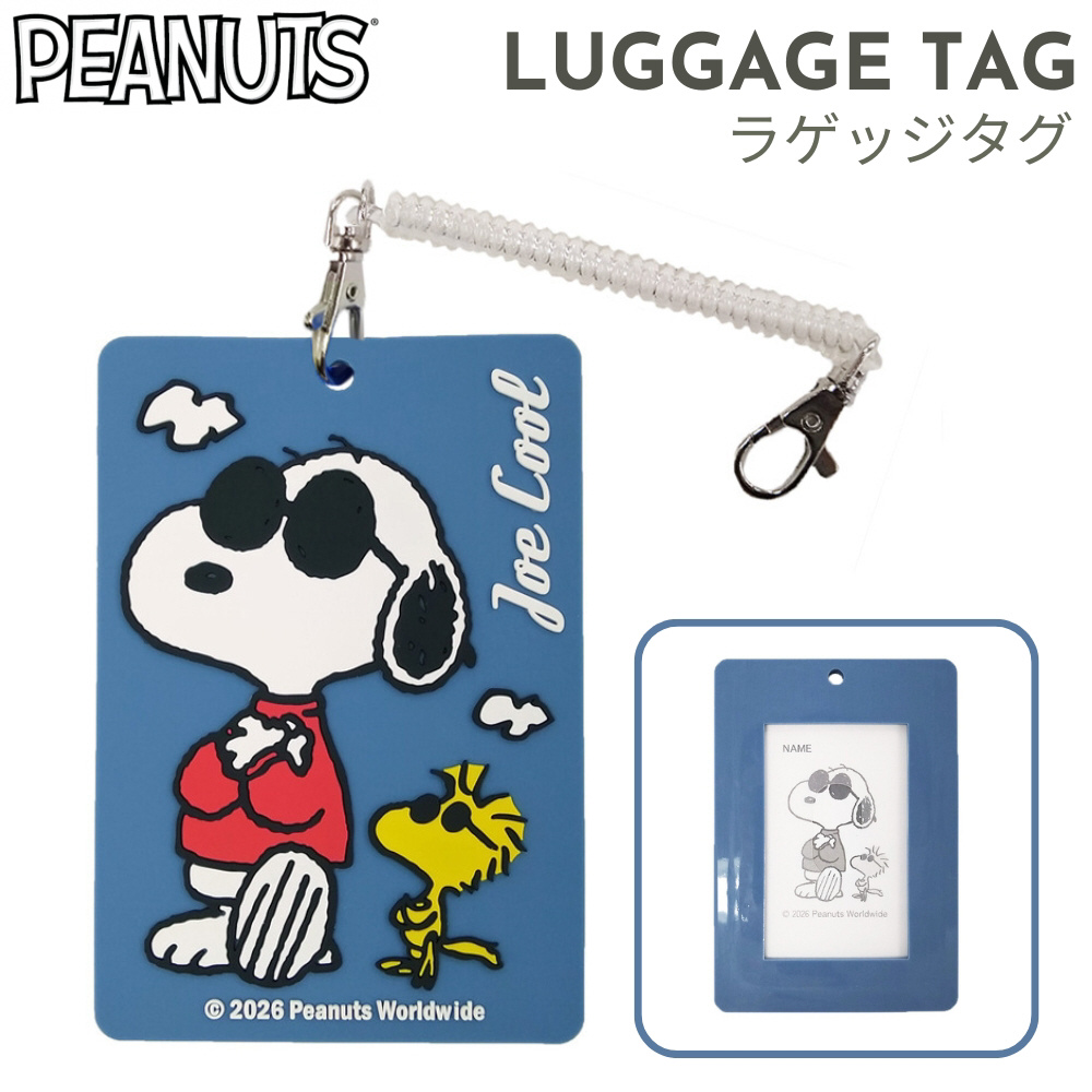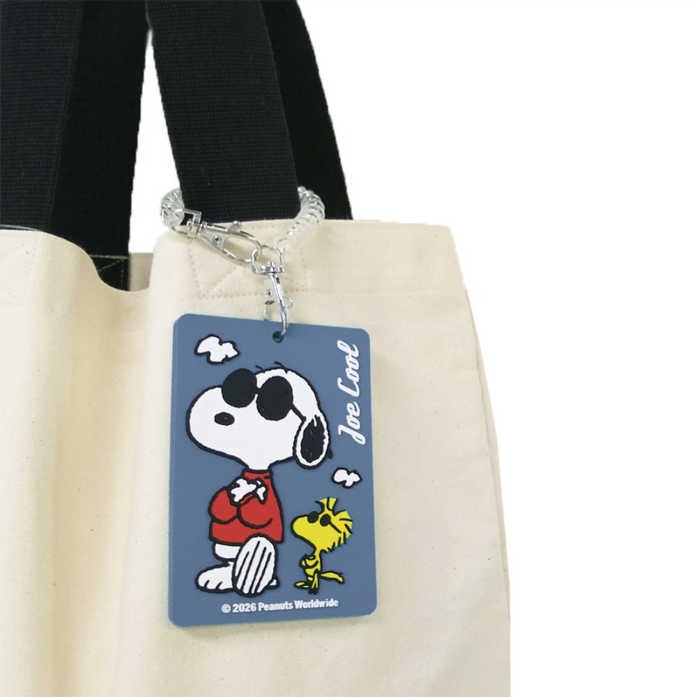 スヌーピーのデザインが目を引く、PVC素材のラゲッジタグ。