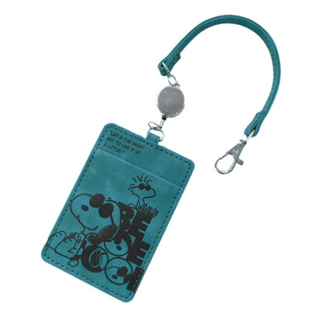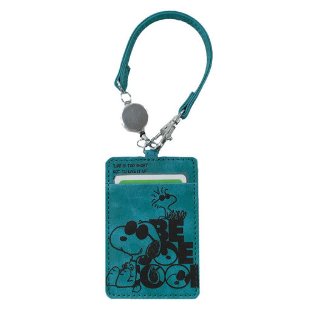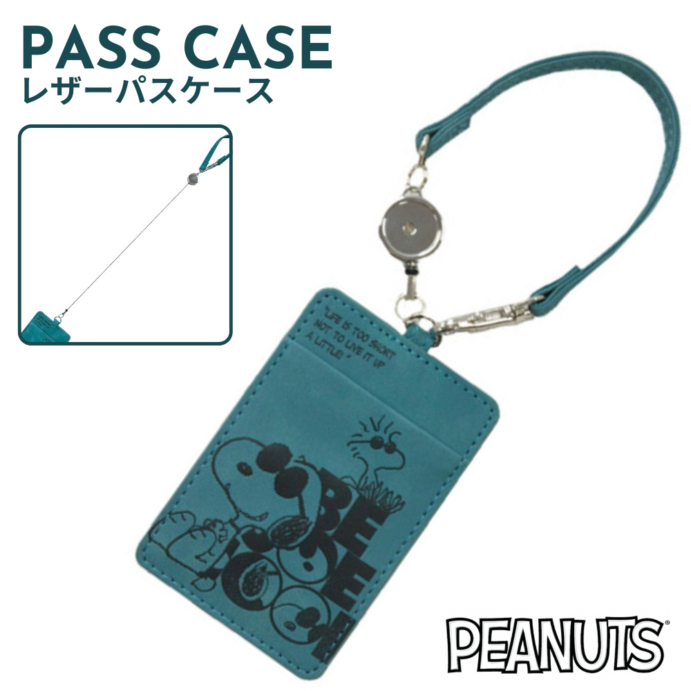 スヌーピーの型押しデザインが魅力。リール付きで使いやすいパスケース。