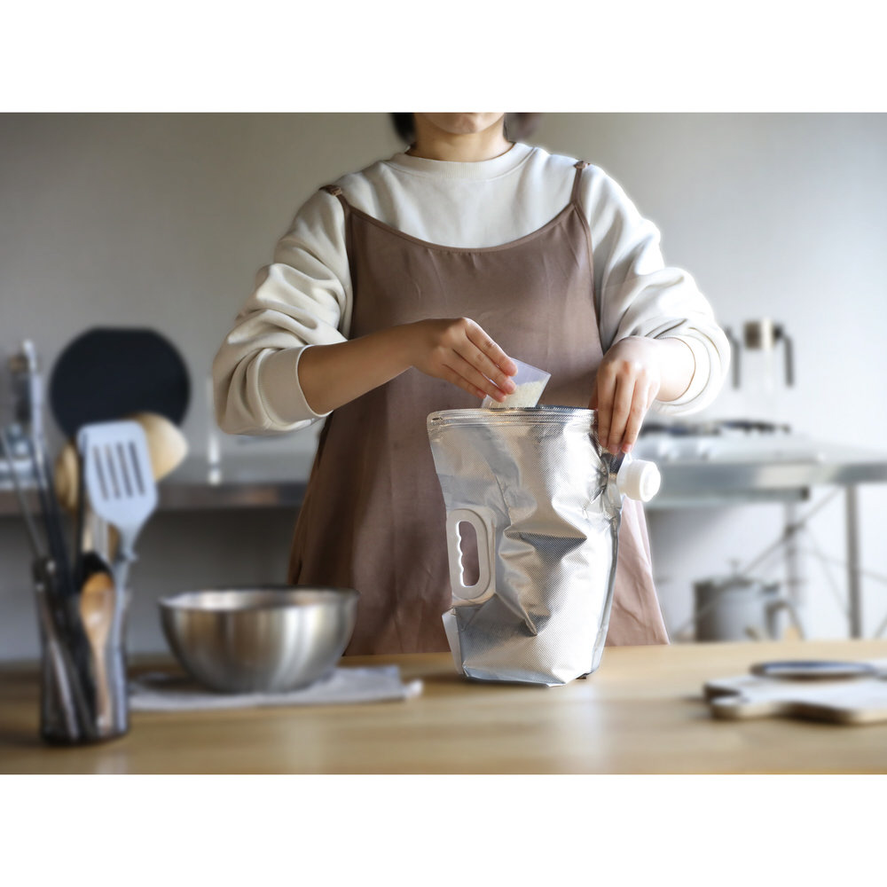 仕様3 材質:[本体]ポリエチレンテレフタレート・アルミ蒸着PETフィ ルム・ポリエチレン[ハンドル・注ぎ口・スライダー]ポリエチレン [注ぎ口のフタ・フィルター]ポリプロピレン[パッキン]シリコーン ゴム[ポンプ]ABS樹脂・AS樹脂・シリコーンゴム