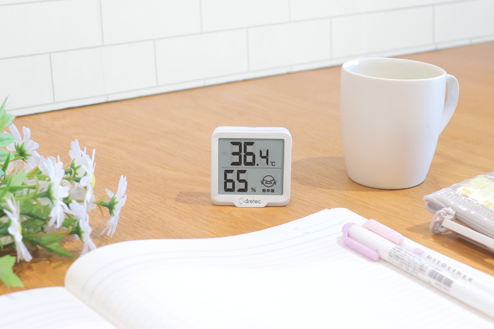 じゃまにならないミニサイズ。表情で熱中症・インフルエンザの危険度の目安がわかる。