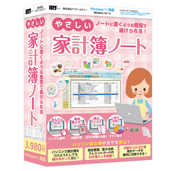 『やさしい家計簿ノート』は、日々の収入や支出を記録するパソコンソフトです。