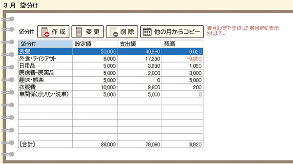 また、月毎の支出費目別予算を設定する「袋分け」機能と連携。
