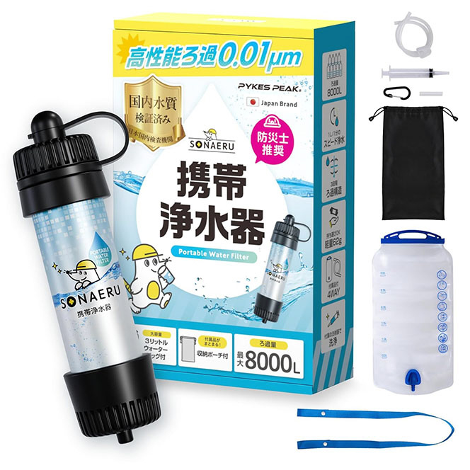 地震・台風・豪雨などの自然災害により、断水や水源の汚染が発生することは珍しくありません。PYKES PEAK「SONAERU」携帯浄水器は、そんな非常時に役立つ防災アイテム。川の水や雨水、お風呂の残り水などをろ過し、透き通った飲み水へ変換できます。防災リュックや非常用持ち出し袋に加えておくことで、水の確保に備えることができ、災害対策の一環として非常に有効です。携帯性にも優れ、アウトドアや旅行でも活躍します。