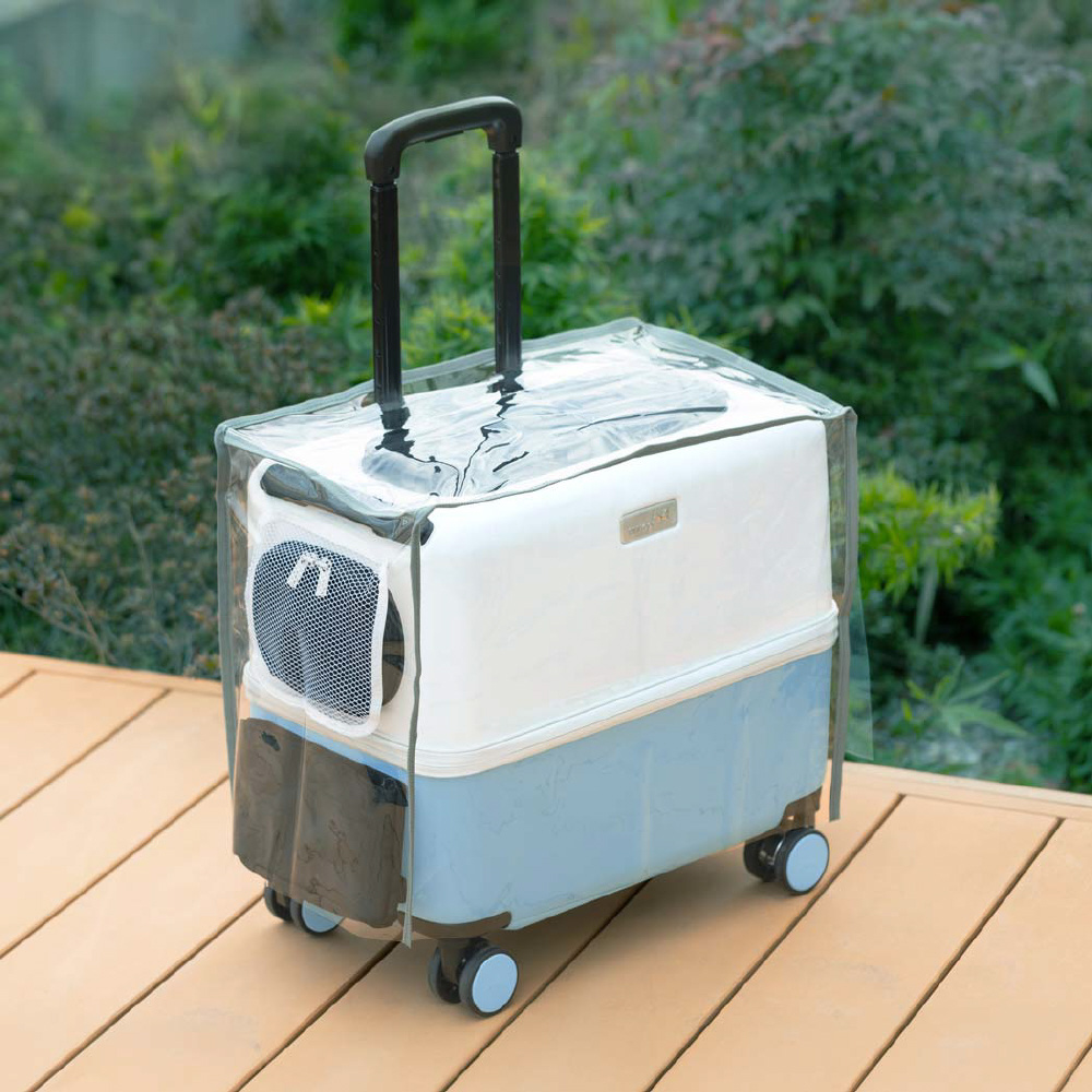 ペットキャリーiCO/iCO+専用のレインカバー。上からかぶせるだけで簡単に装着できます。