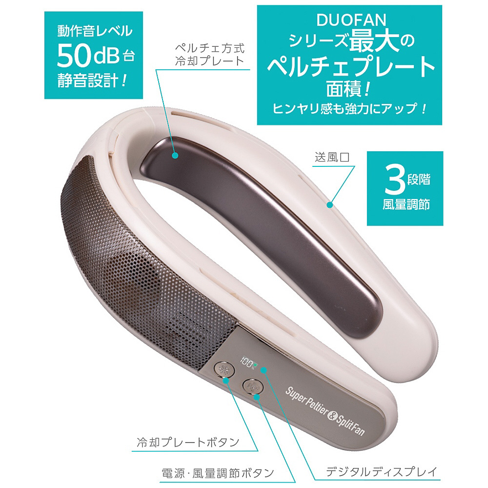 側面のペルチェプレートの長さも伸び、首の冷却面積も広くなったので、ヒンヤリ感もアップ。DUOFANシリーズ最大のペルチェプレート面積!