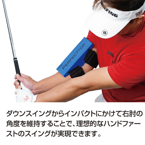 パーフェクトトップは、「右肘の開き」や「溜めの解け」を解消するために開発されたトレーニング器具です。