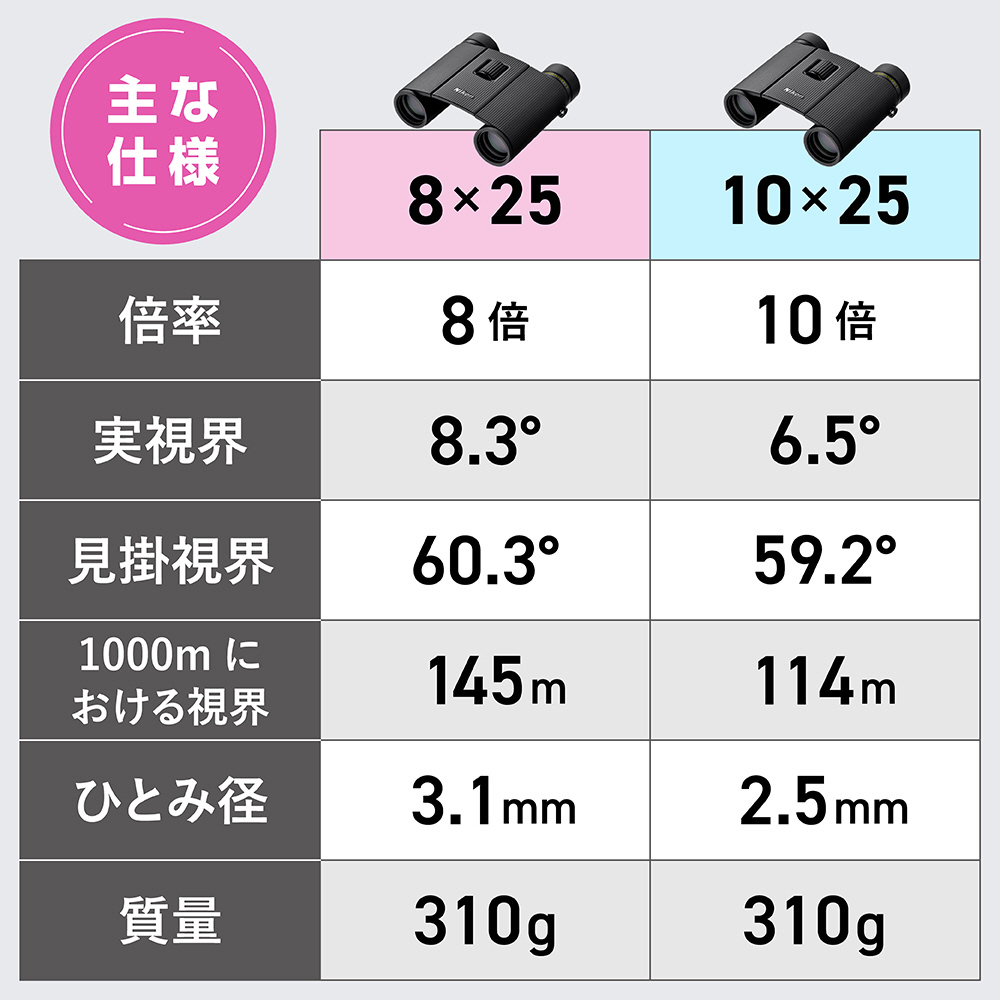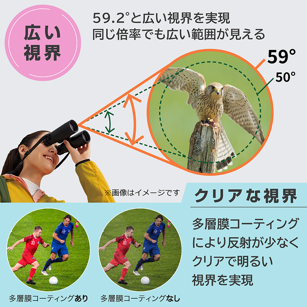広い範囲を見渡すことができ、動きのある対象物を捉えやすく、長時間の観察でも疲れが出にくいモデルです。