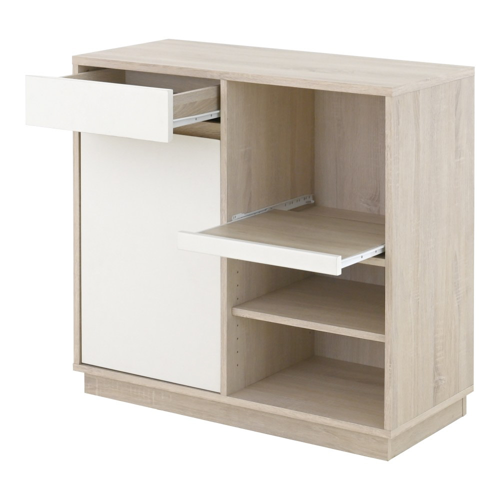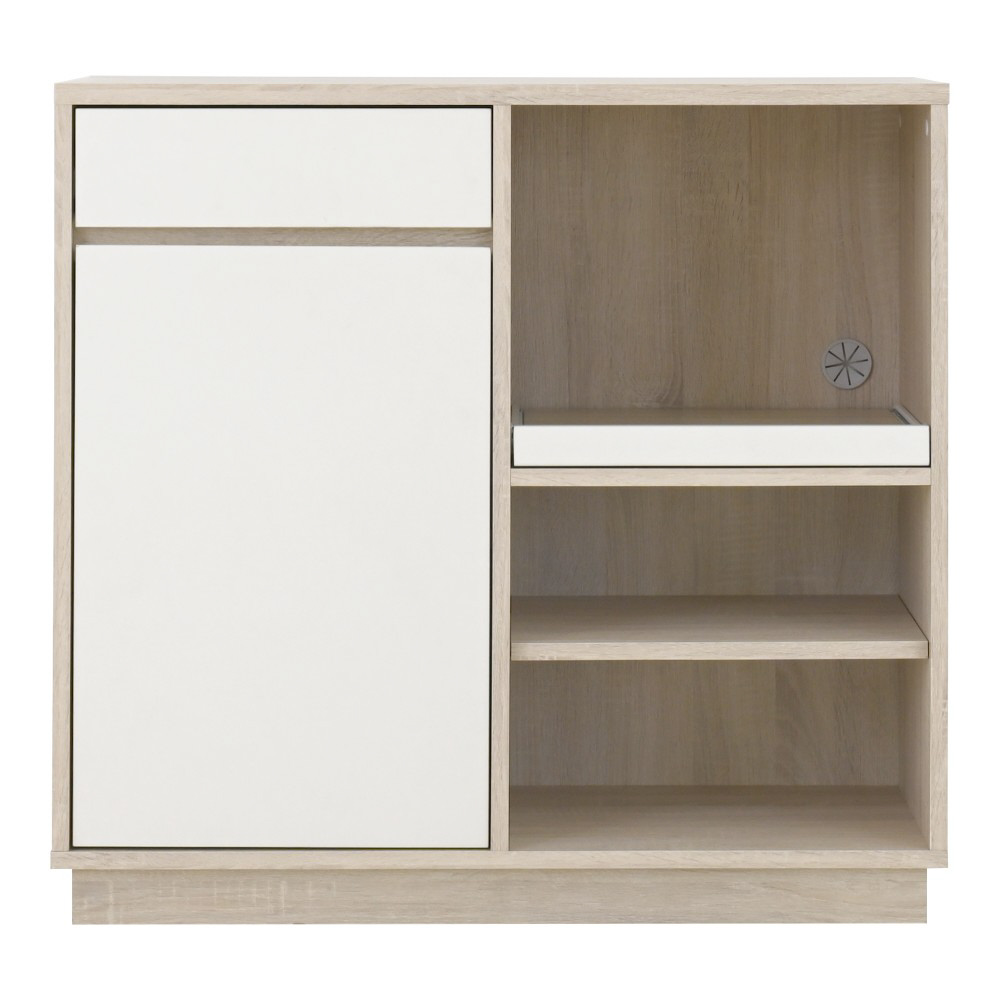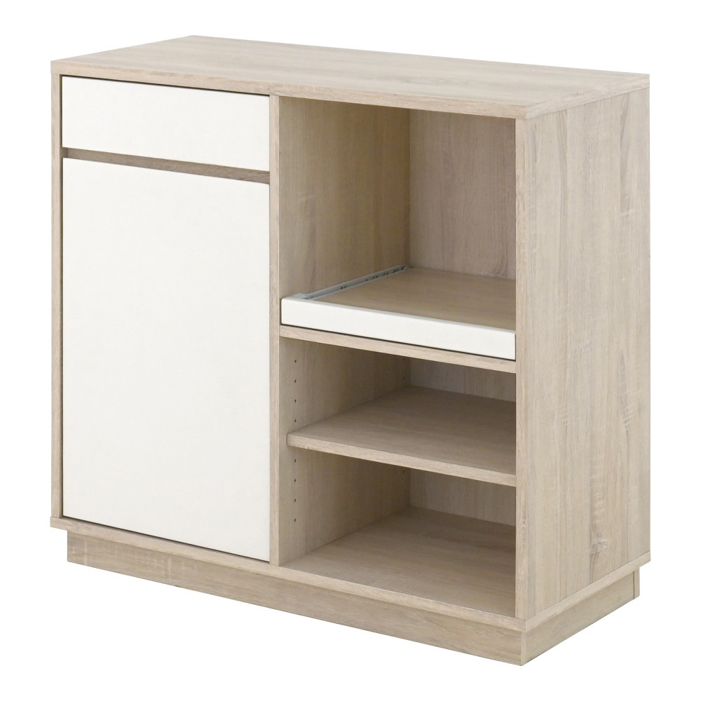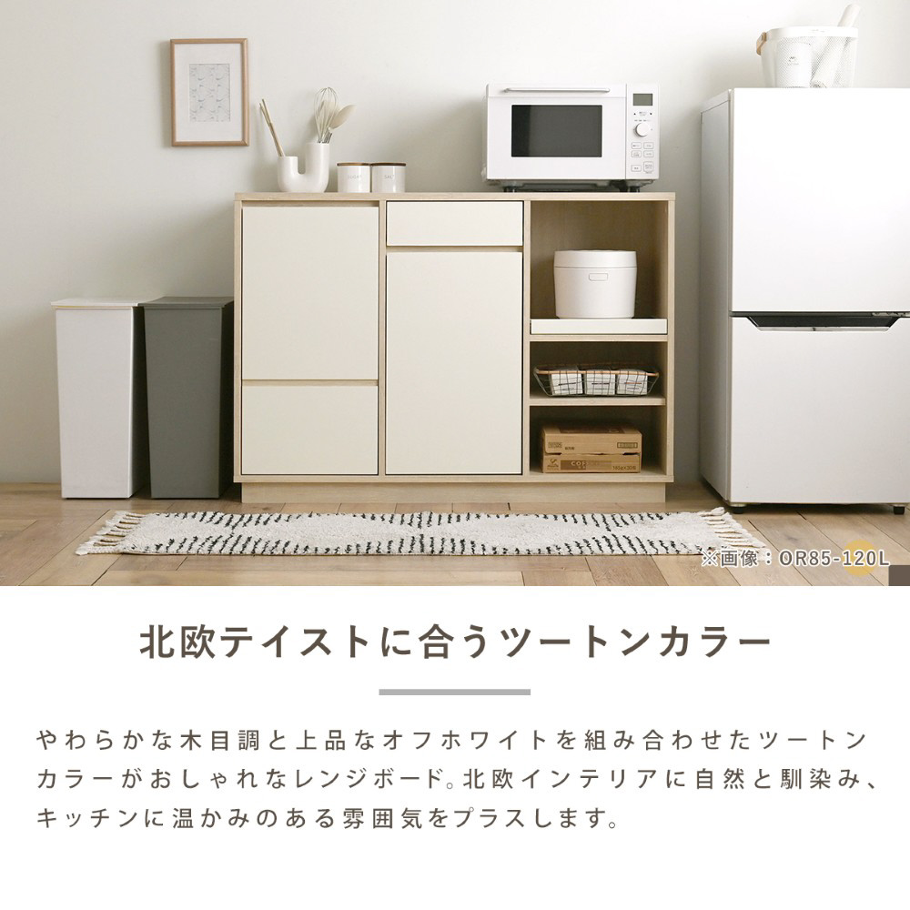 やわらかな木目調と上品なオフホワイトを組み合わせたツートンカラーがおしゃれなレンジボード。北欧インテリアに自然と馴染み、キッチンに温かみのある雰囲気をプラスします。